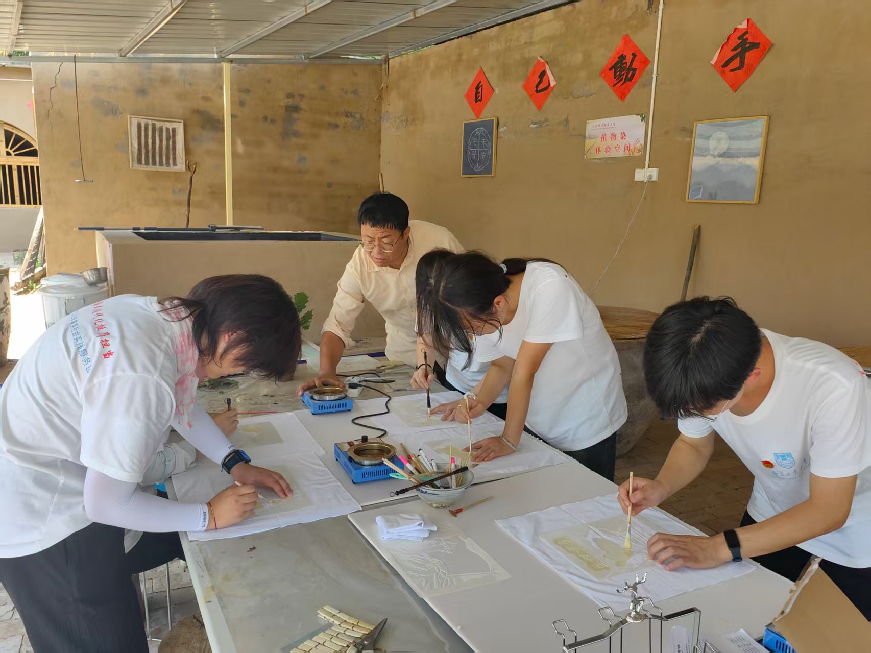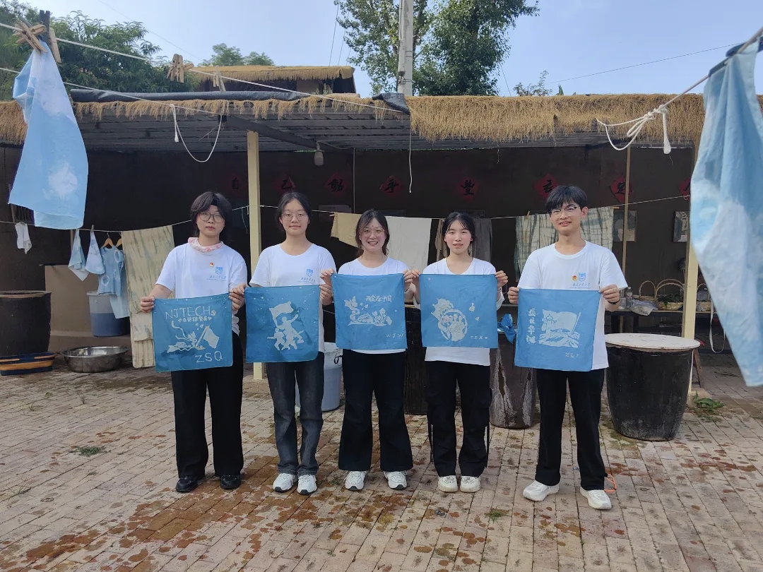 团队还将南泥湾精神与轻工专业特色深度结合,让学生在实践中传承廉洁作风、锤炼专业能力。师生们到访受到村委副书记刘利(359 旅战士后人)、南泥湾工坊创始人李金豹、非遗传承人陈丽老师等的热烈欢迎,在南泥湾植物染工坊,师生遵循革命年代的生产方式,亲手将采挖的植物染料进行清洗、熬煮、固色,再用传统蜡染技艺绘制“党徽”“五角星”“南泥湾垦荒图”等红色元素作品,对染料残渣进行二次利用,对蜡液进行回收循环,这种“不浪费一点资源”的做法,正是对359旅“精打细算”廉洁作风的生动复刻。