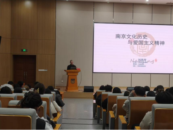 刘老师以“钟灵毓秀,虎踞龙蟠”开篇,围绕南京的城市概况、城市变迁两大方面展开,详细介绍了南京的山与水、历史发展和文化积淀等。刘老师提到,南京作为中国四大古都之一,拥有逾2500年的建城史和近500年的建都史,历史在南京刻下“博爱”的烙印,象征着南京城市精神和市民精神,也铸就了南京深厚的爱国主义传统。刘老师以渊博的学识和生动的讲述,让大家深刻感受到了南京历史文化的独特魅力与爱国主义精神的时代回响。