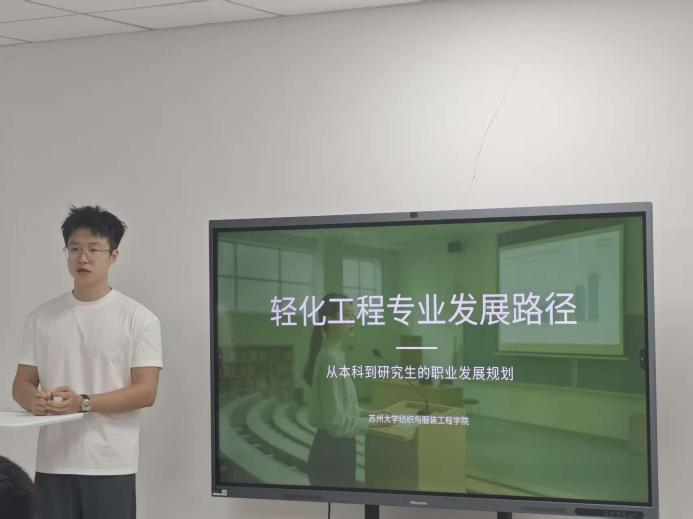 10月24日晚,我院“成长半月谈”系列活动在南苑“一站式”学生社区顺利举行。本次活动邀请了成功考取苏州大学硕士研究生的袁伟铭学长,以“轻化工程专业发展路径——从本科到研究生的职业发展规划”为主题,面向我院各级同学开展生涯规划与考研方向选择专题分享。