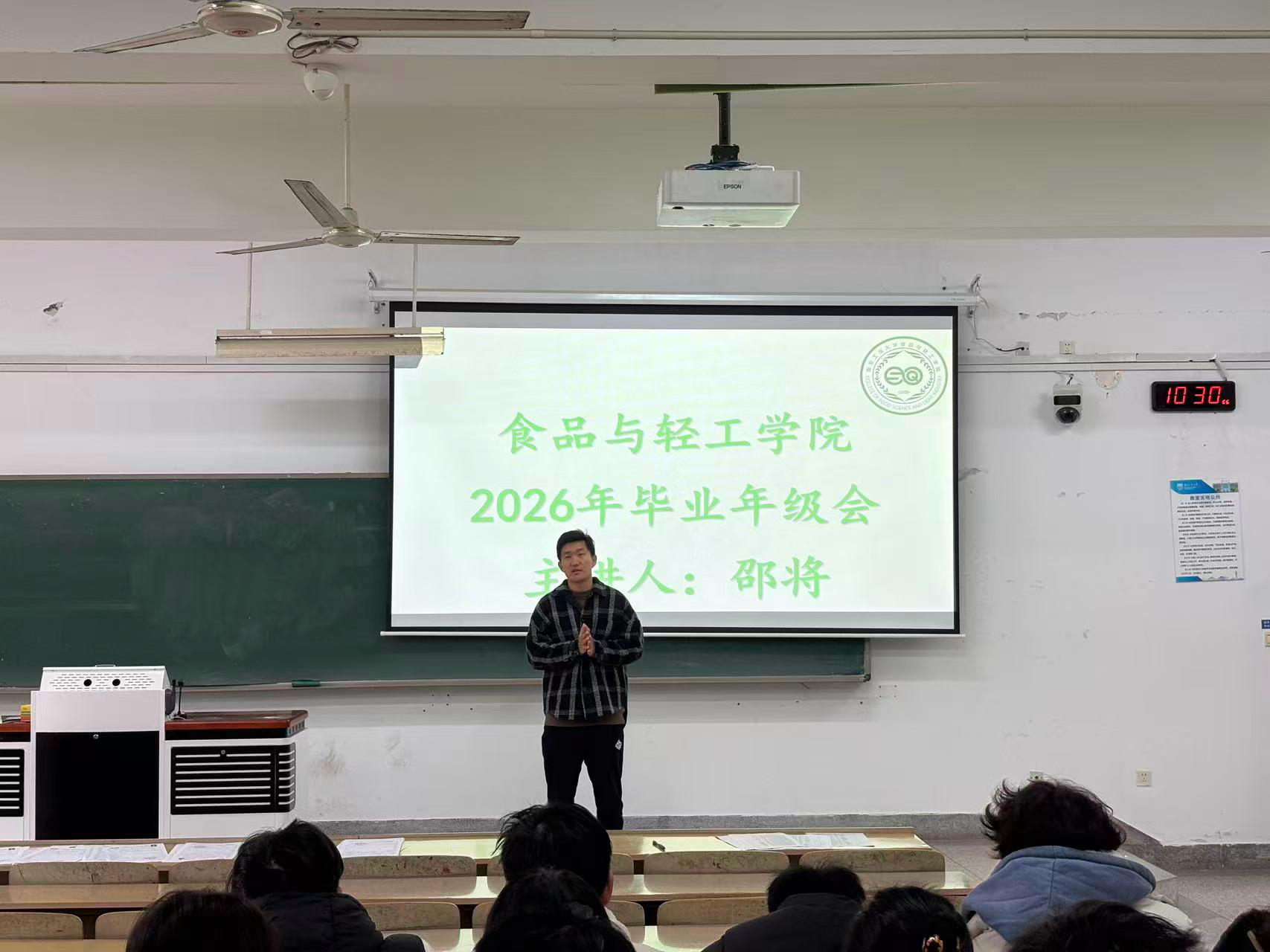 3 月 3 日,辅导员邵将老师在笃学 B202 教室主持召开 2026 届毕业生年级大会,全体大四毕业生参会。
